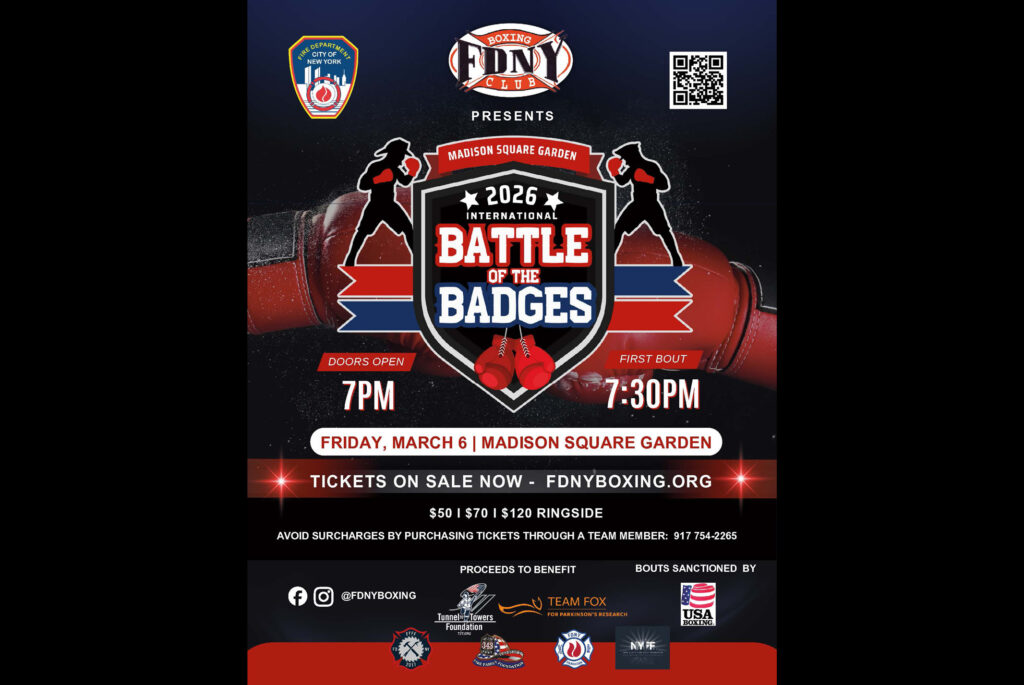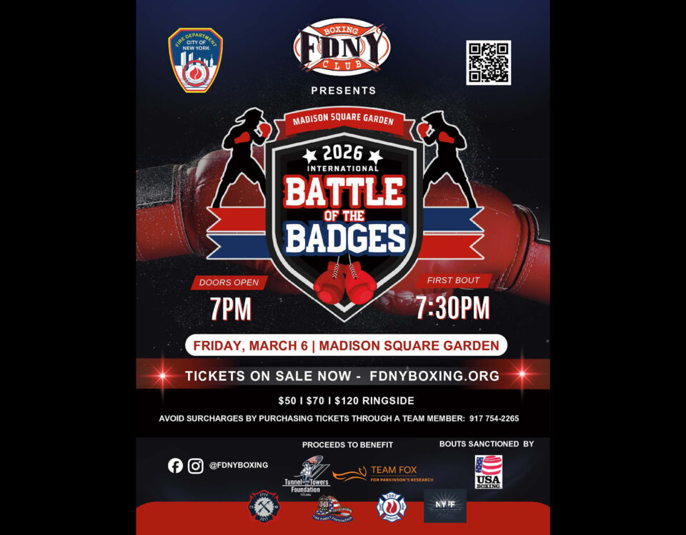 January 12, 2026 January 12, 2026Come Support the FDNY Boxing Club as they Compete in the International Battle of the BadgesCome out and support the FDNY Boxing Club as they take on Police and Firefighters from around the world in an epic International Battle of the […]