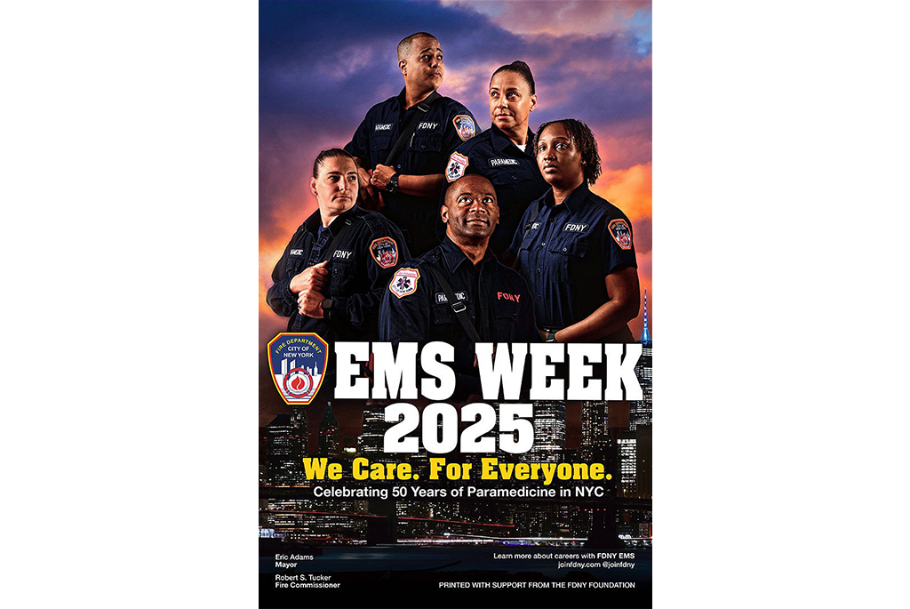 “I think that’s very fitting for the FDNY because, of course, we do care for everyone. EMS Week is an amazing opportunity for us to showcase the great work that our EMTs and paramedics do all the time in New York City,” FDNY Commissioner Robert S. Tucker said at the unveiling event. “When you see this poster around New York City, it should remind you to thank an EMT or paramedic when you see them. The work that you do for our city at times feels thankless, and it is not thankless work.”